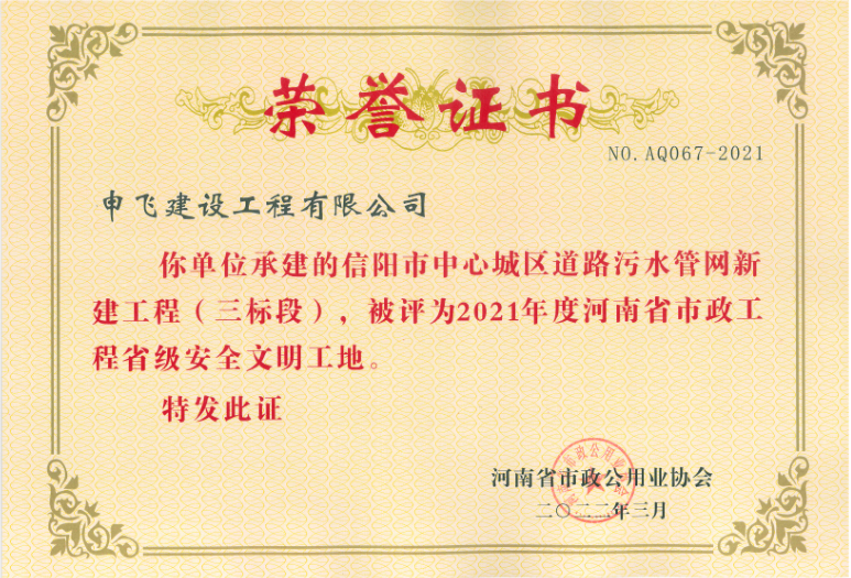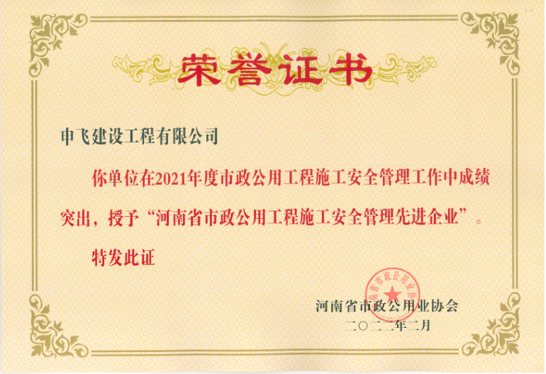 申飛建工再獲“省先進(jìn)施工企業(yè)”、 “市政金杯獎(jiǎng)”等多項(xiàng)榮譽(yù)